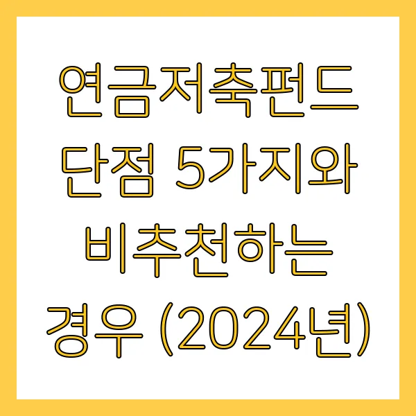 - 목돈 급하게 필요할 때: 집 사거나 아이 학자금 대야 하는데 연금저축펀드에 돈 묶여있으면?! 중도 해지 수수료 폭탄 + 유동성 제약까지! 이럴 땐 차라리 다른 투자 방법 찾는 게 현명해요!